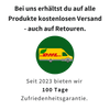 Seit 2023 bieten wir unseren Kunden ein besonderes Versprechen: 100 Tage Rückgaberecht, ganz ohne Risiko. Durch die hohe Kundenzufriedenheit haben wir damit sehr gute Erfahrungen gemacht. Deine Retoure läuft genauso unkompliziert wie der Versand: Sicher mit DHL und für dich komplett kostenlos. Wir brauchen lediglich einen kurzen Zweizeiler mit deiner Bestellnummer oder deinem Namen, und schon senden wir dir das Retourlabel - ohne Schnickschnack. Nach Erhalt der Ware überweisen wir dir den Betrag bereits am nächsten Werktag zurück.