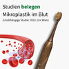 Ja. Unsere Bürstenköpfe bestehen aus Bambus und biobasierten Borsten. Nur das kleine Innenstück zur Befestigung enthält einen minimalen Anteil Kunststoff. Entscheidend: Es entsteht kein Abrieb im Mund, der Mikroplastik freisetzt, im Gegensatz zu klassischen Vollplastik-Köpfen.