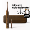 Schallzahnbürste + Premium Holzetui + Ersatbürstenköpfe